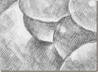 Ceruzás gyümölcs-csendélet részlete – vonalsorozatok mint “söprűk”. Nincsen fény árnyék nélkül!